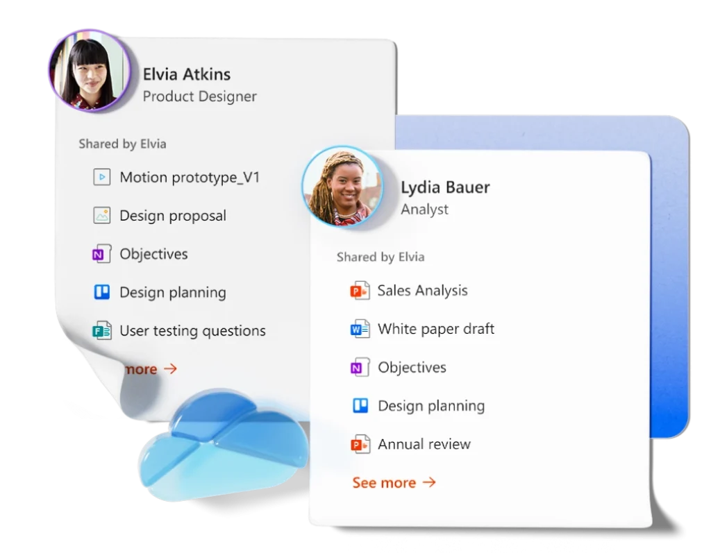 Store, access, and share documents securely with OneDrive and SharePoint, with version control built-in.